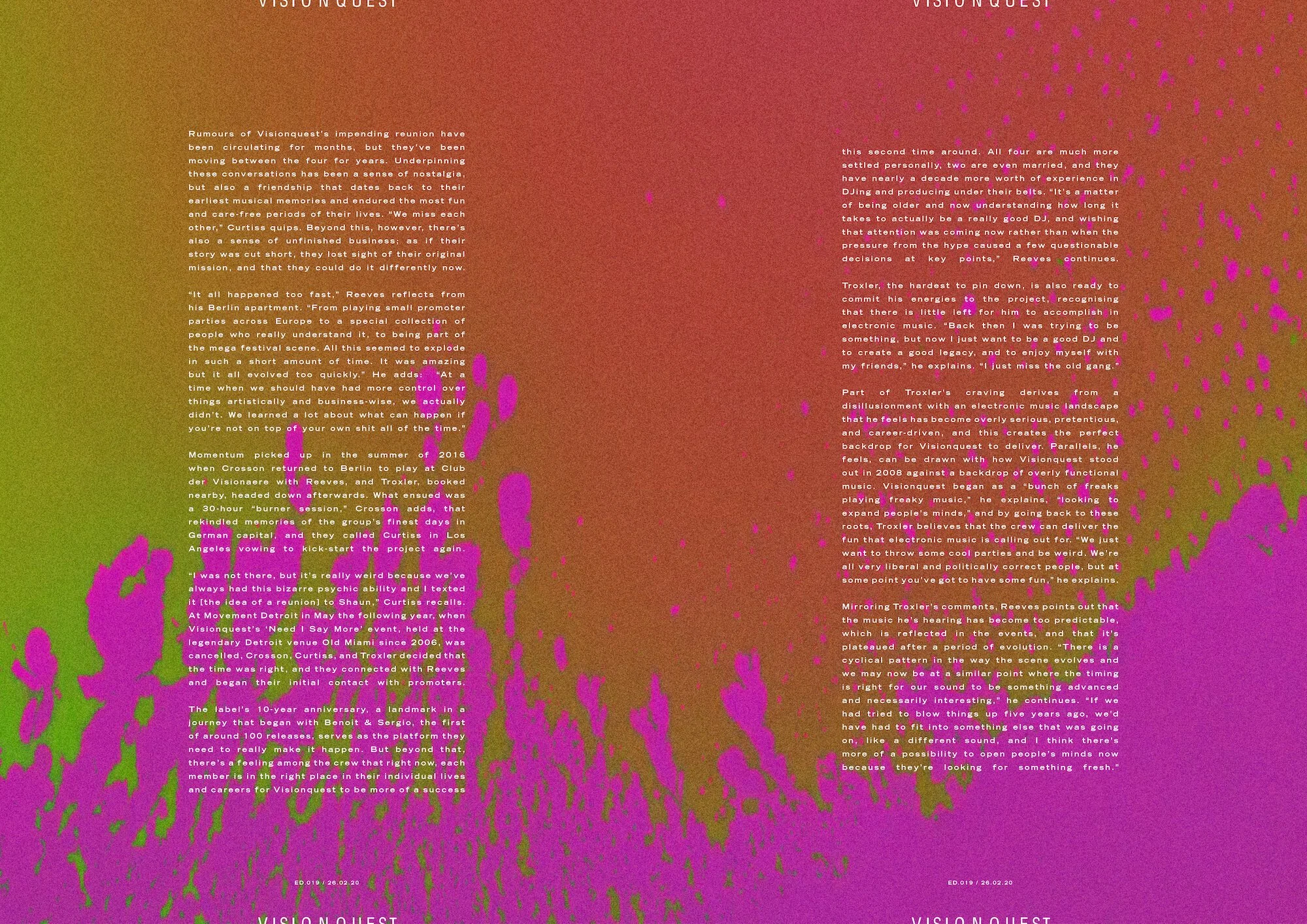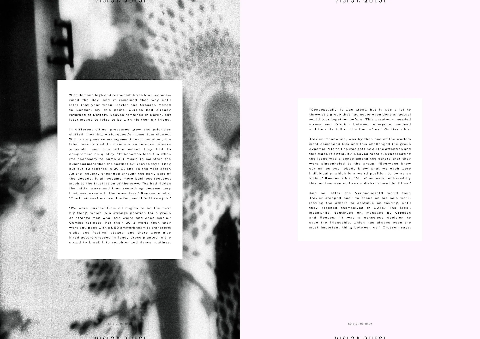 In the year 2020, I had the opportunity to collaborate with XLR8R magazine to develop a comprehensive and visually appealing layout for the much-anticipated Visionquest interview.